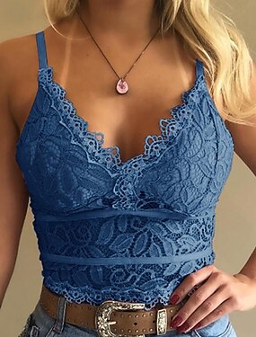 Жен. Блуза Кружевные топы Полотняное плетение Современное На каждый день Без рукавов На бретелях Укороченные топы Повседневные На выход Кружева Открытая спина Белый Желтый Розовый Синий Зеленый Лето