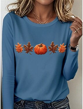 Жен. Футболка Графика Растения Винтаж Стиль Классика Длинный рукав Вырез под горло Круглый вырез Обычные топы Повседневные С принтом Черный Синий Оранжевый Темно-серый Серый Весна Осень Зима