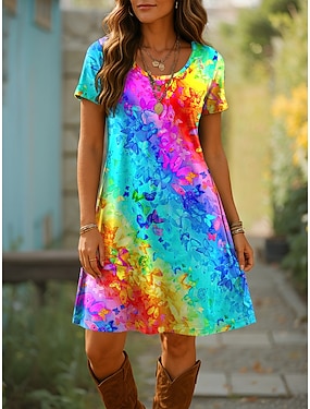 Жен. Мини-платье Платье-футболка Платье A-силуэта Летнее платье На каждый день Повседневные Стандартный Омбре Графика Геометрический принт С короткими рукавами "Круглый вырез ""под горло"""