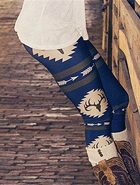 Жен. Брюки Леггинсы Уютные леггинсы На каждый день Богемный Полная длина Завышенная Олень Эластичная талия С принтом Воздухопроницаемость Удобный Эластичная Отпуск Для улицы На каждый день