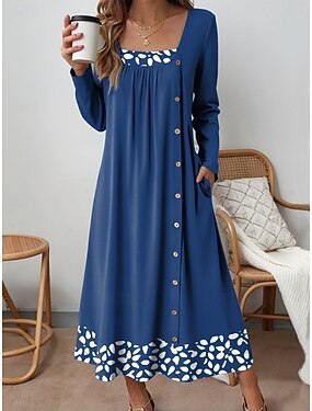 Жен. Платье средней длины Платье прямого кроя На каждый день Повседневные Свободное облегание Графика Геометрический принт Длинный рукав Квадратный вырез Черный Красный Синий Весна Осень Зима
