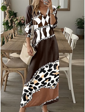 Женское макси-платье повседневное платье т-shirt платье футболка леопардовый блочный карманный принт V-образный вырез длинное платье макси платье свидание отпуск длинный рукав осень зима