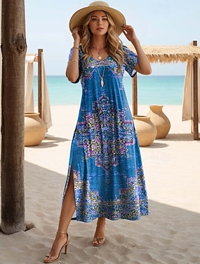 Платье мини для женщин футболка платье летнее платье печатное платье активная мода уличная одежда отдых на свежем воздухе работа обычная посадка цветочное пейсли полусамоткровенный V-образный вырез