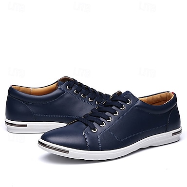Мужские синие кроссовки из искусственной кожи с белой резиновой подошвой – удобные кроссовки на шнуровке для спорта, путешествий и повседневной носки.