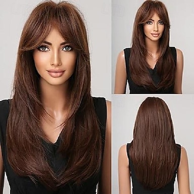 длинный прямой парик из термостойкого синтетического волокна с челкой или пробором посередине - идеально подходит для карнавальных косплей-вечеринок - модный женский парик