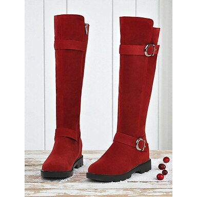 Жен. Ботинки Рождество Повседневные Сапоги до колен Пряжки На низком каблуке Круглый носок Классика На каждый день Минимализм Искусственная замша Молния Миндальный Черный Красный