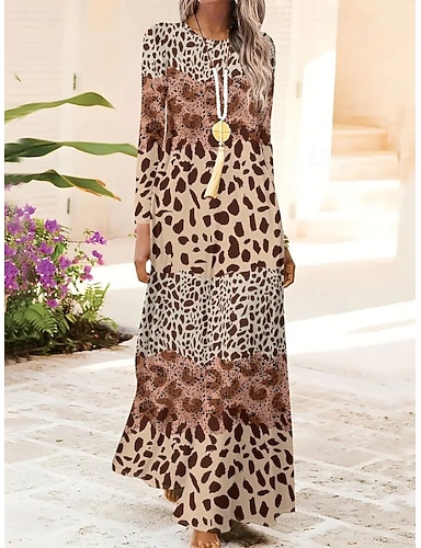 Жен. Длинное платье Платье прямого кроя Платье A-силуэта Для вечеринки На каждый день Богемный Повседневные Свидание На выход Стандартный Графика Животное Леопард Длинный рукав Вырез под горло