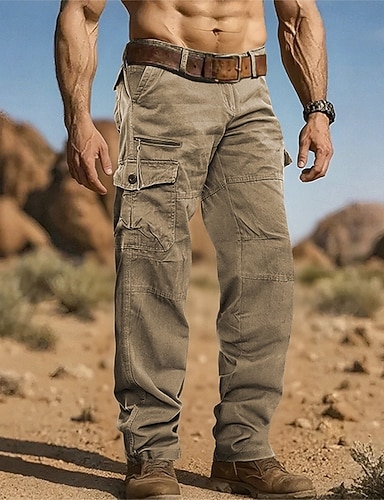 Муж. Брюки карго Штаны Штаны для туризма и прогулок Пуговицы Мульти карман Полотняное плетение Пригодно для носки на открытом воздухе Повседневные Отдых и туризм Мода Классика Армейский желтый Черный
