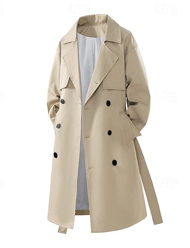 Муж. Пальто Тренч Длинный тренч Отпуск Повседневные Наступила зима Полиэстер С защитой от ветра Мягкий Верхняя одежда Одежда Мода Классика Полотняное плетение Карман Лацкан Двубортный крой