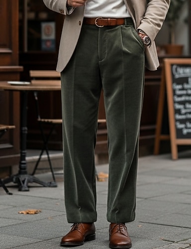 Муж. Штаны Костюм Бархатные штаны Передний карман Прямая нога Полотняное плетение Комфорт Полная длина на открытом воздухе Бизнес Повседневные Мода Элегантный повседневный стиль Зеленый Неэластичная