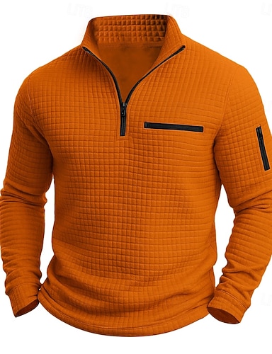 Муж. Толстовка Толстовка с капюшоном на молнии Черный Белый Винный Темно синий Хаки Капюшон Полотняное плетение Четверть молния Для занятий спортом Повседневные Праздники Полиэстер