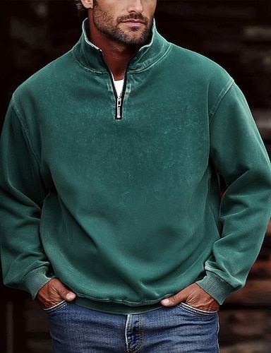 Муж. Толстовка Толстовка с застежкой-молнией Черный Военно-зеленный Темно-зеленый Серый Половина молния Полотняное плетение Для занятий спортом Повседневные Праздники Хлопок