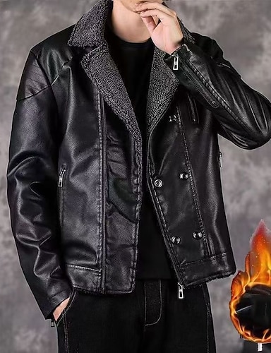 Муж. Кожаные куртки Флисовая жилетка Байкерская куртка Мотоциклетная куртка Отпуск Повседневные С защитой от ветра Сохраняет тепло Карман Осень Зима Полотняное плетение Мода Классика Лацкан Обычная