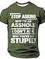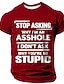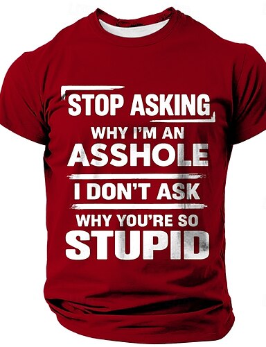 Муж. Забавный сленг Грубый Футболка С короткими рукавами Футболка 3D печать Вырез под горло Рубашка Мода Повседневные Для улицы Повседневные Черный Красный Синий Лето Весна Одежда S M L XL XXL XXXL