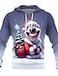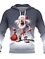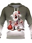 Новогодняя тематика Муж. Животное Дед Мороз Толстовка Мода Повседневные Вырез под горло Дом Для вечеринок Подарок Красный Синий Кулиска Осень Зима Дизайнер