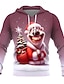 Новогодняя тематика Муж. Дед Мороз Костюм Футболка С короткими рукавами Футболка 3D печать Вырез под горло Рубашка Повседневные Оригинальный рисунок Художественный Отпуск Для вечеринок Для улицы