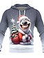 Новогодняя тематика Муж. Дед Мороз Толстовка Мода Повседневные Вырез под горло Дом Для вечеринок Подарок Светло-синий Серый Кулиска Осень Зима Дизайнер