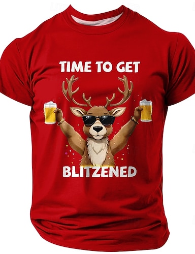 Новогодняя тематика Муж. Дед Мороз Немецкий Футболка С короткими рукавами Футболка 3D печать Вырез под горло Рубашка Повседневные Оригинальный рисунок Художественный Отпуск Для вечеринок Для улицы