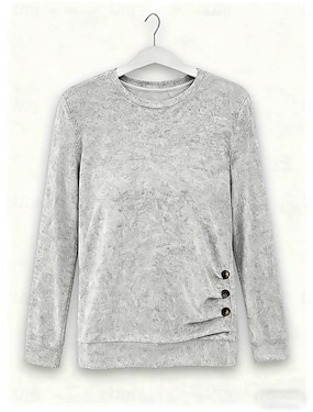 Жен. Футболка Сплошной цвет Элегантный стиль Мода Длинный рукав Квадратный вырез Обычные топы Повседневные выходные Пуговицы Асимметричный вырез Черный Коричневый Бледно-розовый цвет Серый Весна Осень