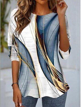 Женская футболка с длинным рукавом круглой вырез длинный рукав туника графический геометрический элегантный винтажный стильный круглой вырез обычные топы повседневный принт розовый синий фиолетовый