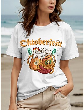 Октоберфест Жен. Футболка Графика Мода Стиль Современное С короткими рукавами Вырез под горло Обычные топы Повседневные выходные С принтом Черный Лето Весна
