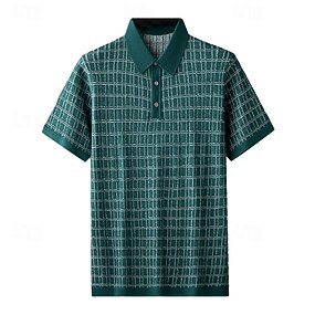 Муж. Поло Вязать Поло Бизнес Повседневные Лацкан С короткими рукавами Формальная Офис Клетки Пэчворк Лето Черный Светло-зеленый Темно-зеленый Оранжевый Поло