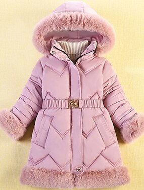 Дети Девочки Пуховик Куртка для активного отдыха Сплошной цвет Мода Меховая оторочка Сохраняет тепло Защита от ветра на открытом воздухе Пальто Верхняя одежда 4-12 лет Осень Розовый Лиловый Бежевый