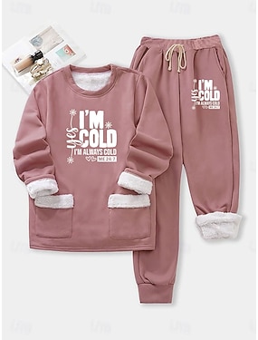 Женский комплект пижам с флисовой подкладкой элегантный теплый модный комплект из двух частей спортивные костюмы брюки наборы с длинным рукавом круглым вырезом графический текст принт для отдыха на
