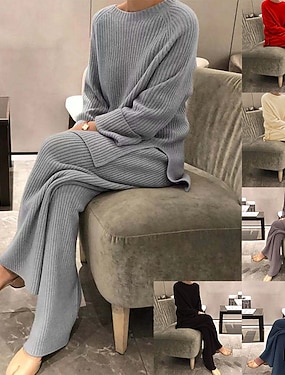 Жен. Элегантный стиль Теплый Мода Комплекты из двух предметов Спортивный костюм Комплекты брюк Длинный рукав Широкий, стянутый у запястья Вырез под горло Круглый вырез Графика Полотняное плетение
