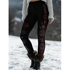 Жен. Леггинсы Уютные леггинсы Отпуск На каждый день Полная длина ЗавышеннаяPantsHalloween Графика Персонажи Рисунок Сохраняет тепло Удобный Эластичная Повседневные Отпуск Праздники Черный Осень Зима