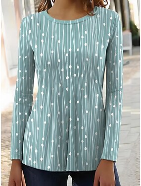 Футболка женская с круглым вырезом длинным рукавом туника графика полосы элегантная винтаж обычные топы для выхода выходные печать синий