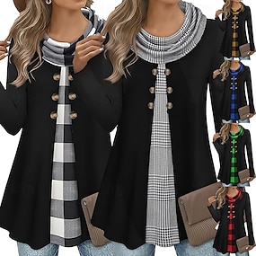 Жен. Блуза В клетку Элегантный стиль Повседневные Стиль Длинный рукав Вырез под горло Длинные топы Повседневные Праздники На выход Пуговицы Белый Красный Синий Зеленый Хаки Весна Осень