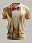 Рождественский золотой смокинг 3D футболка для мужчин, роскошный праздничный наряд с красным галстуком-бабочкой, забавный элегантный костюм для празднования Рождества