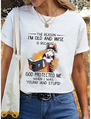 Жен. Футболка Графика Буквы Ослик Винтаж Стиль На каждый день С короткими рукавами Вырез под горло Обычные топы Повседневные выходные С принтом Черный Белый Синий Лиловый Лето Весна