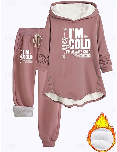 Жен. Повседневные Толстовка Длинный рукав Капюшон Графика Буквы Кулиска С принтом Повседневные Розовый Синий Серый Осень Свободное облегание