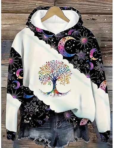Жен. Толстовка с капюшоном и пуловером Графика Геометрический принт Абстракция На каждый день Длинный рукав Капюшон Обычные топы Вечерние наряды Для улицы На каждый день