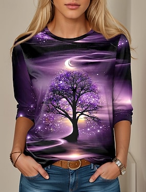 Жен. Футболка Графика Градиент Винтаж Стиль Классика Длинный рукав Вырез под горло Обычные топы Повседневные С принтом Синий Лиловый Зеленый Серый Весна Осень Зима