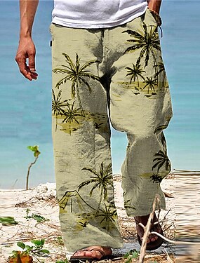 Муж. Штаны Летние штаны Пляжные штаны Кулиска Эластичная талия Прямая нога Кокосовая пальма Графические принты Комфорт Повседневные Праздники Гавайский Оригинальный рисунок Белый Желтый