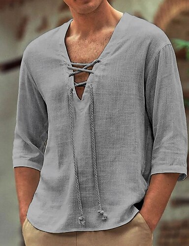 Муж. Хлопково-льняная рубашка Белая хлопковая рубашка Летняя рубашка Повседневная рубашка Полотняное плетение Повседневные Праздники Белый Розовый Серый Светло-синий Длинный рукав V-образный вырез
