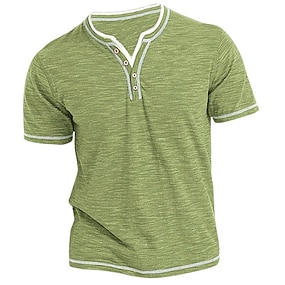 Муж. Футболка Рубашка Хенли Короткие рукава Полотняное плетение Мода Оригинальный рисунок Классический Хенли Отпуск Для улицы На выход Лето Черный Синий Зеленый Футболка Хенли