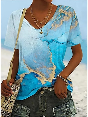 женская футболка базовая неоновая&яркий абстрактный принт короткий рукав обычные топы v-образный вырез повседневный выходные желтый синий золотой светло-голубой