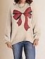 Жен. Вязаная ткань Пуловер Элегантный стиль Мода Уличный стиль Графика Вырез под горло Трикотаж С принтом Длинный рукав Обычные топы Вязать Рождество на открытом воздухе Повседневные Бежевый