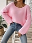 Жен. Вязаная ткань Пуловер Симпатичные Стиль Уличный стиль Стиль Сплошной цвет V-образный вырез Шнуровка Трикотаж Длинный рукав Обычные топы Вязать на открытом воздухе Повседневные Праздники