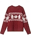 Жен. Вязаная ткань Пуловер Элегантный стиль Мода Уличный стиль Графика Вырез под горло Трикотаж С принтом Длинный рукав Обычные топы Вязать Рождество на открытом воздухе Повседневные Винно-красный
