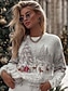 Жен. Вязаная ткань Мода На каждый день Графика Новогодняя ёлка Снежинки Вырез под горло Трикотаж Длинный рукав Обычные топы Вязать Офис Праздники Белый Осень Зима