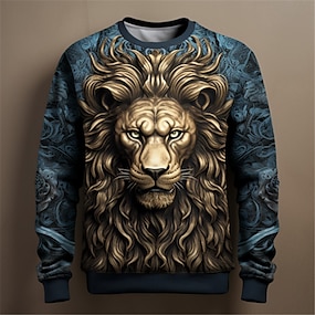 Муж. Графика Животное Лев Толстовки Толстовка пуловера Длинный рукав Толстовка Вырез под горло Мода Повседневные На каждый день 3D печать Отпуск Праздники На выход С принтом Весна & осень