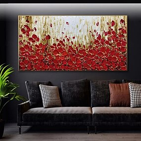 Картина маслом на холсте ручной работы, настенное украшение, 3D мастихин, красный цветок для домашнего декора, рулонная картина без рамы, не натянутая