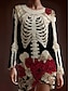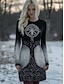 Жен. Платье до колена Вязаное платье Повседневное платье Платье-футболка Платье A-силуэта Отпуск На каждый день Для вечеринок Стандартный Цветочный принт Графика Черепа Длинный рукав Вырез под горло