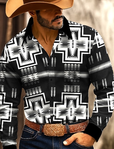 Муж. Ацтеков Геометрический рисунок Этнический Рубашка Западная рубашка Кнопка рубашка Длинный рукав Винтаж Ретро на открытом воздухе Повседневные Рабочая одежда Весна Осень Отложной 3D