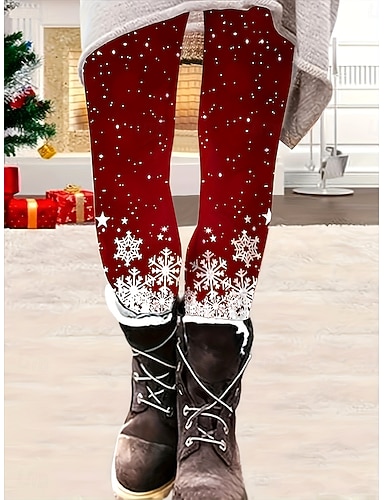 Жен. Леггинсы Отпуск Винтаж Мода Полная длина ЗавышеннаяPantsНовогодняя тематика Графика Градиент В снежинку Рисунок Мягкий Дышащий Эластичность Отпуск Для улицы Повседневные Цвет бордо Осень Зима